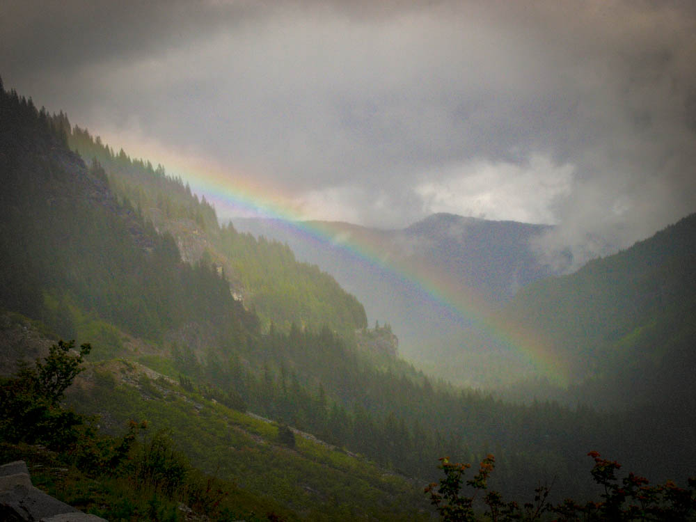 As the sun barely poked through on a rainy day at Mt. Rainier National Park, I was able to catch this quick rainbow shot. Not perfect, but at least you get the idea. Even the rainiest days have special moments, as long as you keep your eyes open for them.