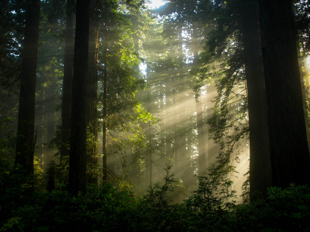 I probably almost got into an accident when I pulled into this particular grove of redwoods in Redwood National Park in California. The sun rays through the trees were absolutely breathtaking. I have never seen the sun play through the shadows like this.