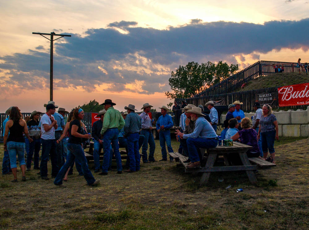 This is a shot of the crowd unwinding and enjoying a few cold ones as dusk settles in after the Canadian Pro Rodeo in Maple Creek, Saskatchewan. In a town that small, I can only imagine this is a major event for them. I know I really enjoyed it.
