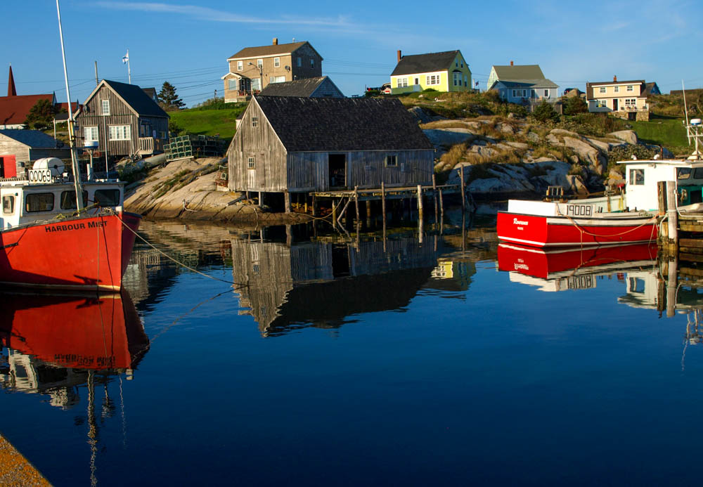 This is the beautiful little fishing village of Peggy’s Cove near Halifax in Nova Scotia. Evening was settling in nicely and the water was nice and still.