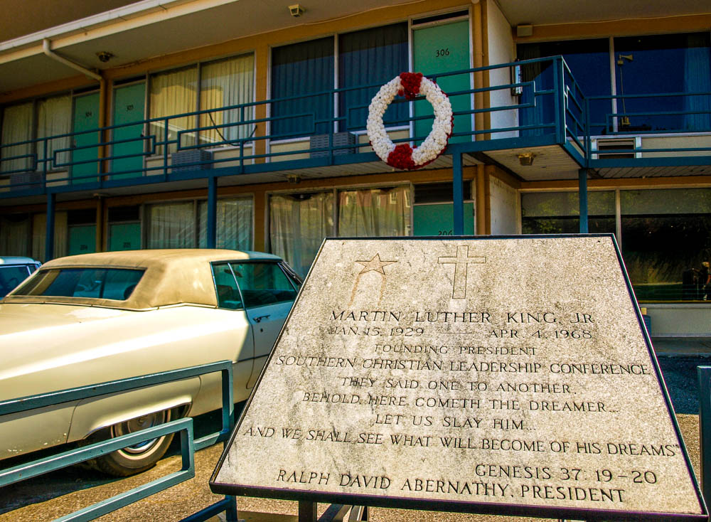This is the Loraine Hotel in Memphis, Tennessee. On April 4th, 1968 Dr. Martin Luther King Jr. was assassinated on this balcony. It is a place for somber reflection and never stops being an emotional stop for me. I come here often and imagine what the world would have been like today had that day never happened. The quote on this plaque is the best one I can possibly imagine.