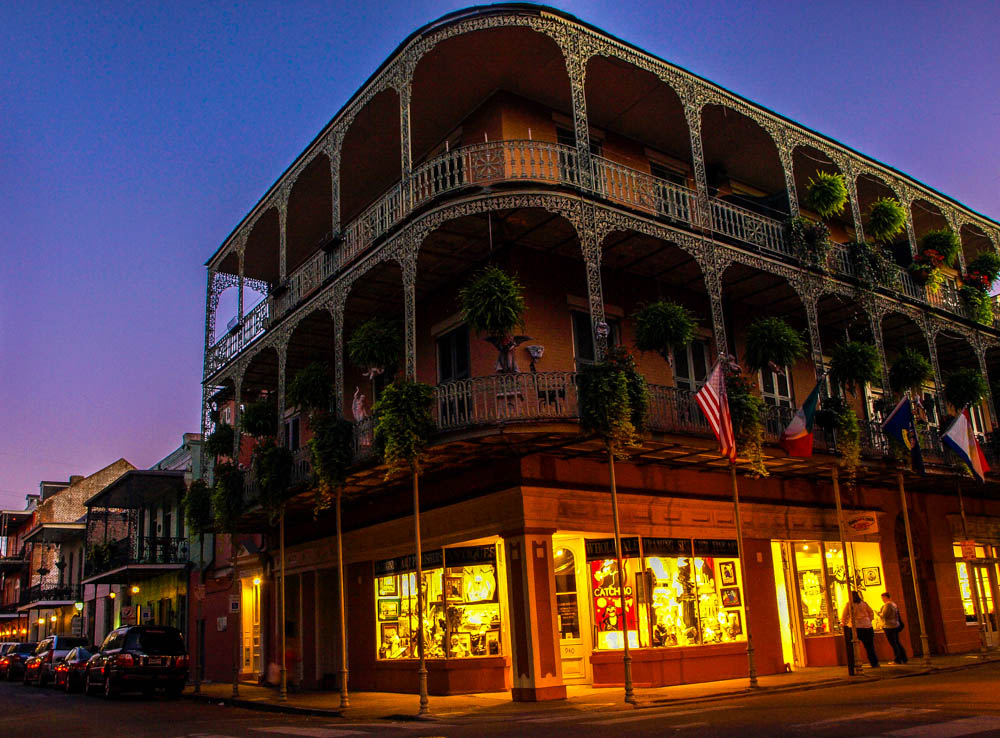 I took this shot as dusk was settling in and the lights were coming on in the French Quarter in New Orleans, Louisiana. It is a magical time of day, and I loved the light coming out of this shop and the ironwork on the building. I used to live a few blocks away from where I took this, and I loved walking through the Quarter every day.