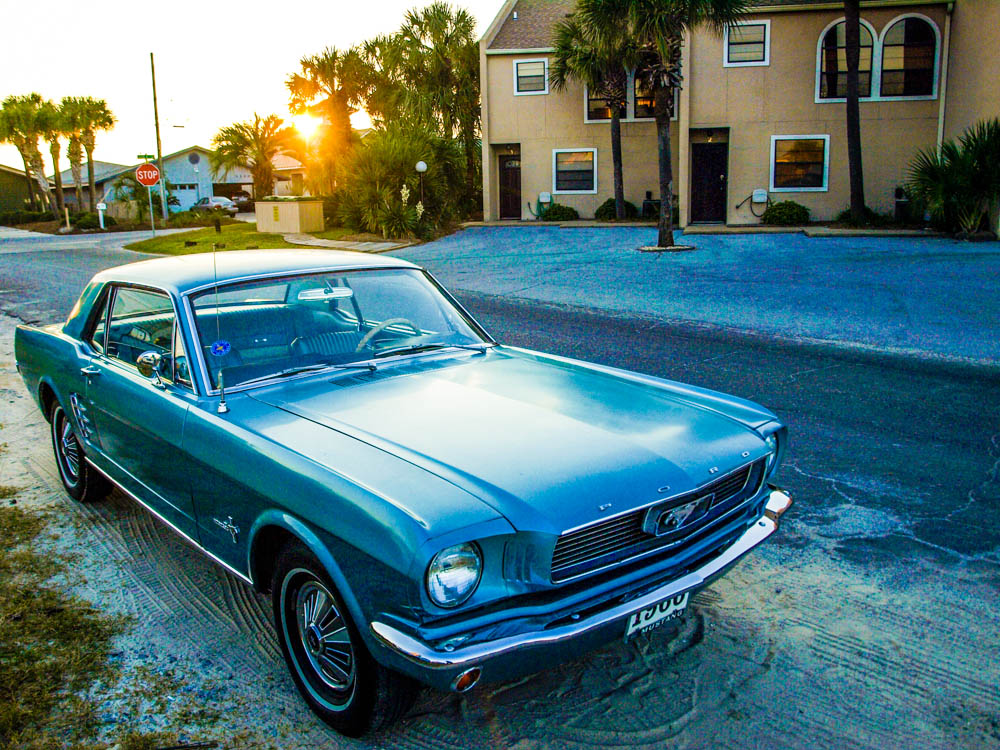 I’ve owned two mustangs in my life. I gave up one last year to a good home, and one still lives on blocks in my mother’s garage. They’re the only cars I’ve ever owned in the U.S. and I think they are beautiful machines. This is a gorgeous little ’66 parked near the beach in Panama City Beach, Florida.