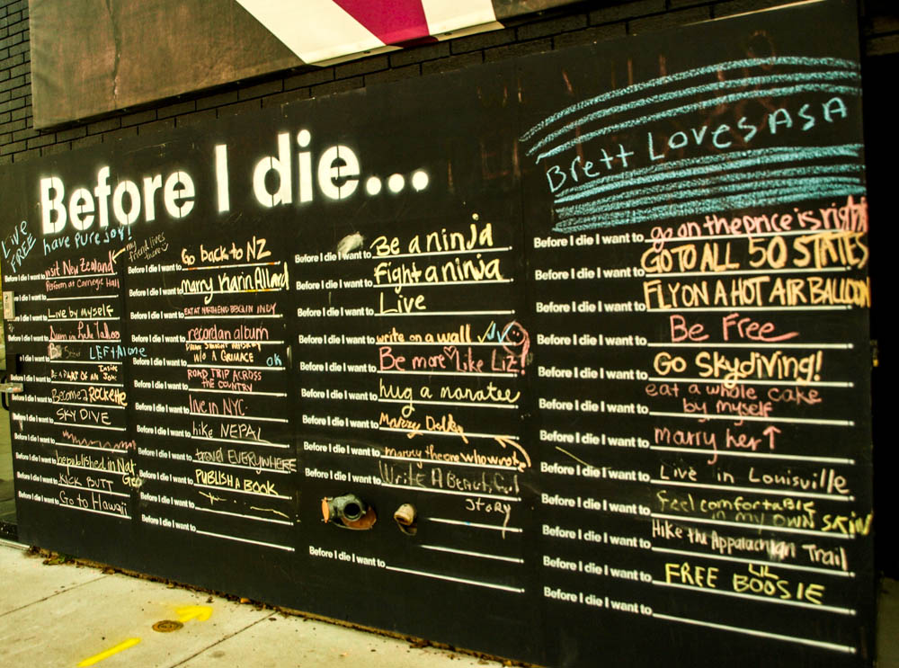 1. Great idea by Candy Chang.This photo reminds me of a quote by Paulo Coelho.”One day you will wake up and there won’t be any more time to do the things you have always wanted.Do it now.”