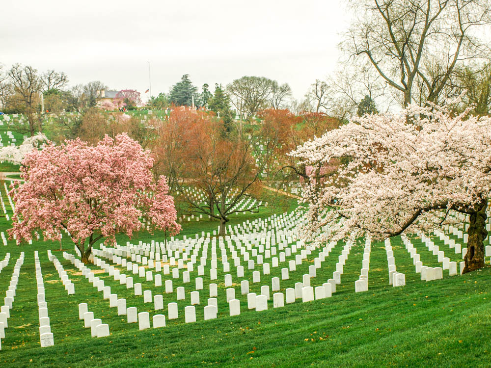 Arlington National Cemetery in Arlington, Virginia is always a somber place. Row upon row of tombstones, many of young men and women killed in the prime of their life shows the high cost of war. The springtime bloom makes me feel good that they are resting in a beautiful place.